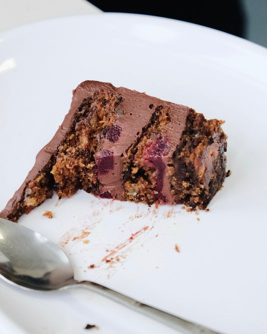 Tort vegan Carrot Cake ciocolată neagră și vișine