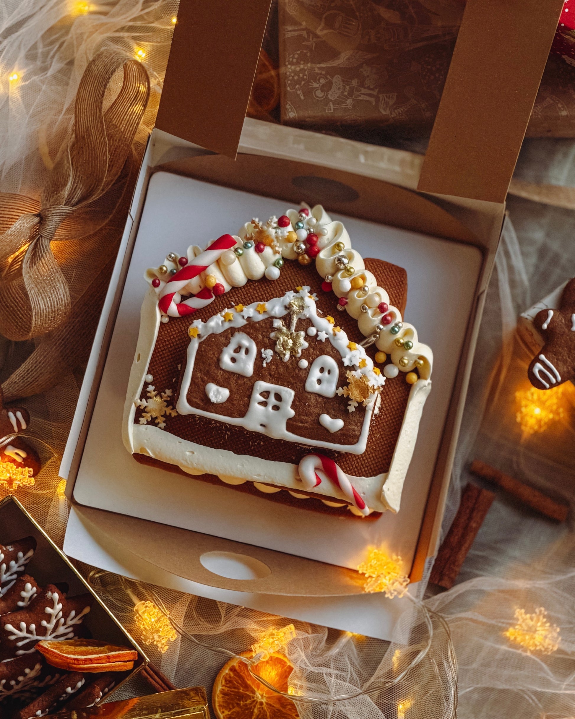 Tortul Căsuță din foi cu miere — un desert cu aer de sărbătoare, construit din arome calde și texturi care duc direct la magia lunii decembrie. Un tort-jucărie, parfumat, cremos și plin de detalii, cu o căsuță de turtă dulce chiar în mijloc, coaptă și decorată de noi.