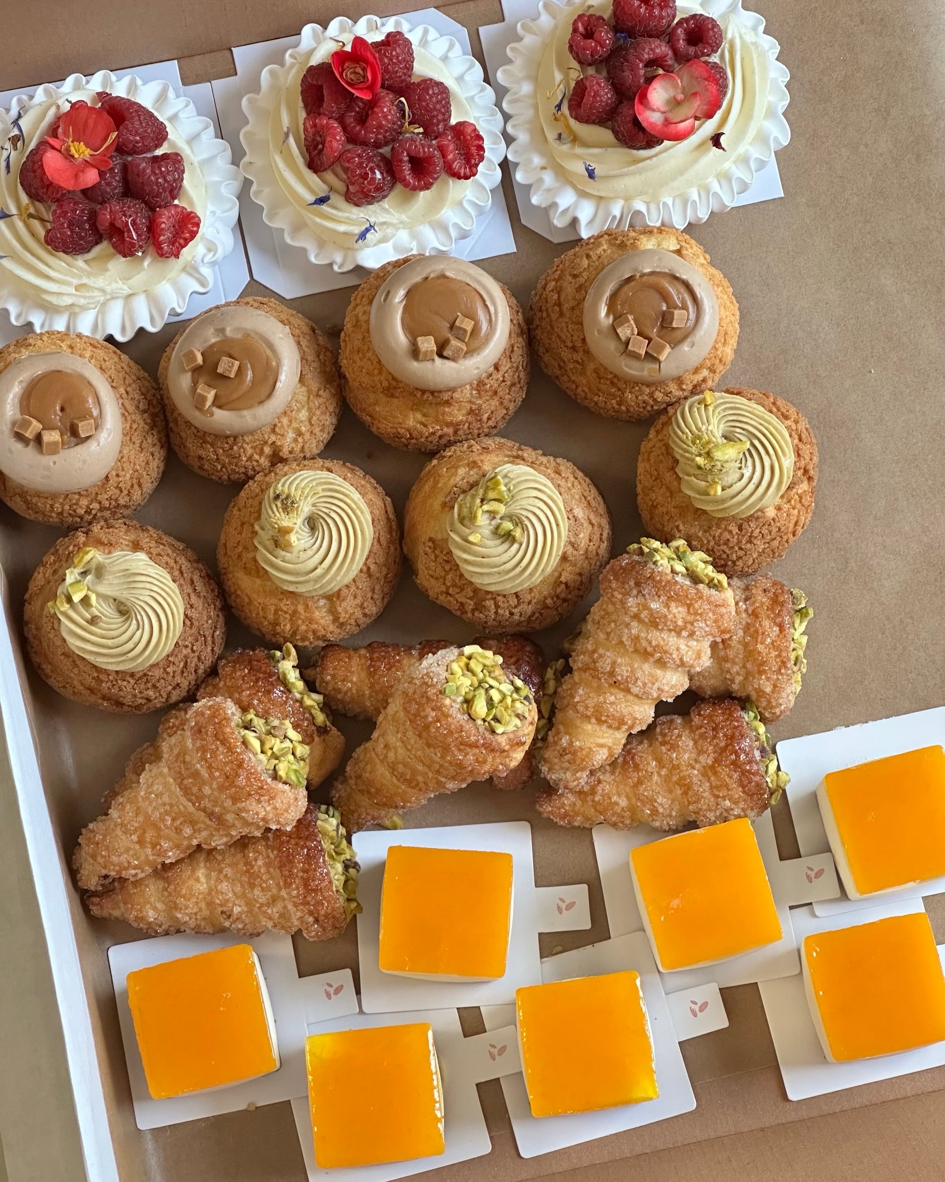 O cutie generoasă de mini-dulciuri artizanale, ideală pentru cine festive, întâlniri cu prietenii sau pauze dulci la birou.