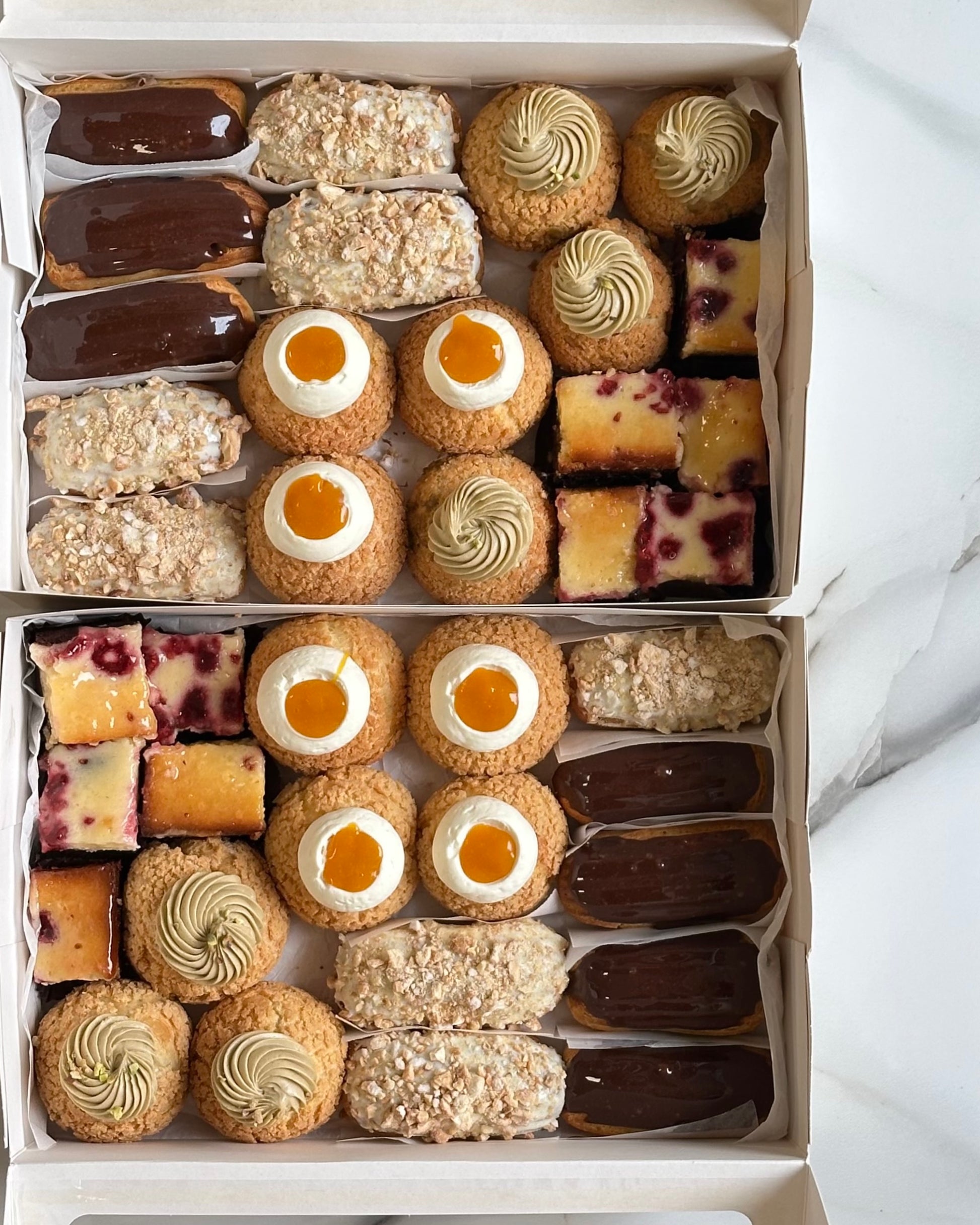 Un mix variat de mini-dulciuri artizanale, perfect pentru a aduce un strop de rafinament la o masă în familie sau pentru a încerca mai multe sortimente deodată.